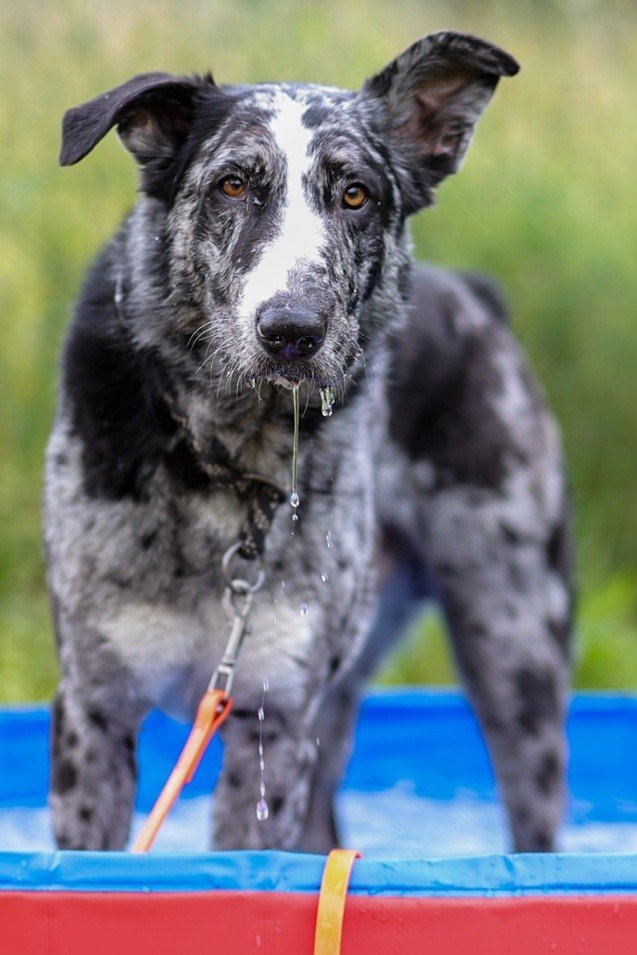 Ich bin freundlich zu Menschen, vertrage mich gut mit anderen Hunden und liebe es, im Wasser zu spielen.